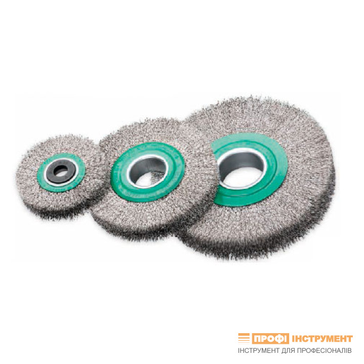 Cylindrical brush 150x34x40mm, Stainless corrugated wire 0,3 mm, 6000 rpm