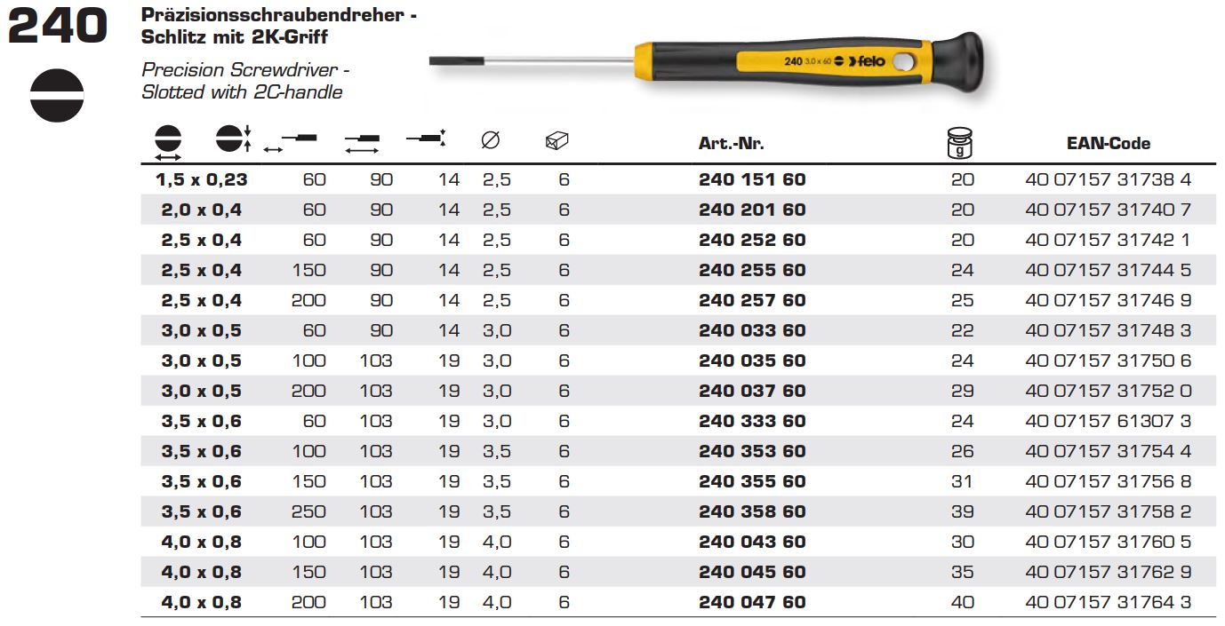 Викрутка для точних робіт FELO SL 3,5х0,6х100х103 мм (24035360)