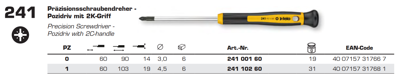Викрутка для точних робіт хрестова PZ1х60х103 мм FELO (24110260)