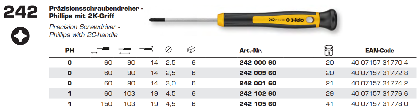 Викрутка для точних робіт хрестова PH1х150х103 мм FELO (24210560)