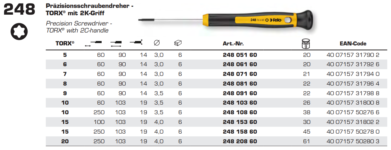 Викрутка для точних робіт TORX6х60х90 мм FELO (24806160)