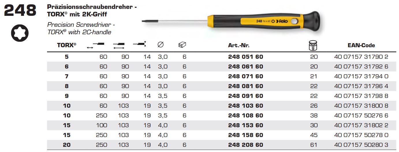 Викрутка для точних робіт FELO TORX20х250х103 мм (24820860)
