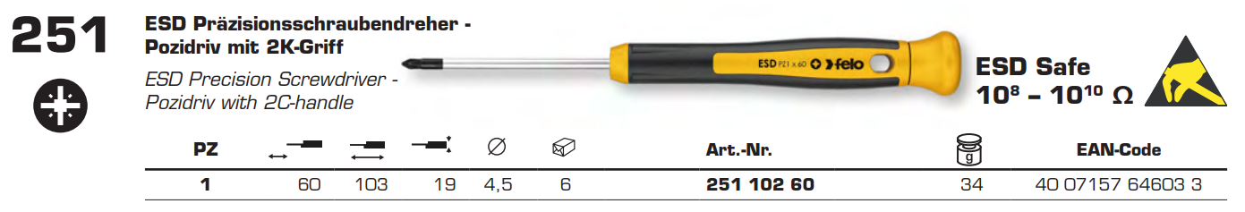 Викрутка для точних робіт хрестова PZ1x60x90 мм мм FELO ESD Safe (25110260)