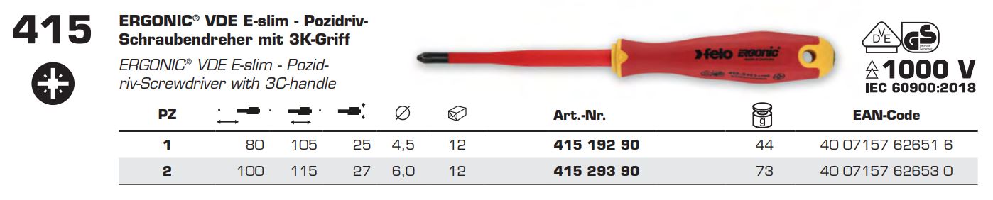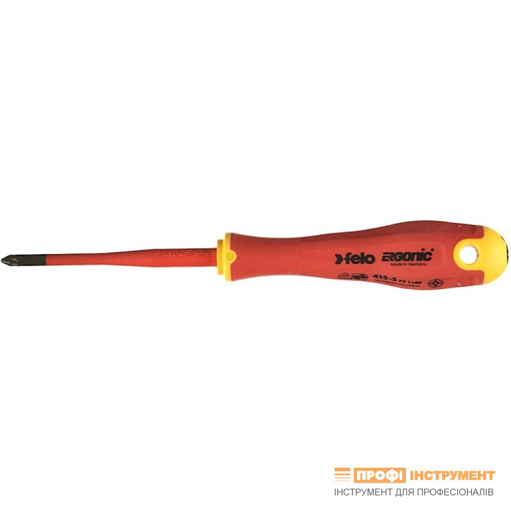 Викрутка FELO діелектрична хрестова ERGONІC VDE E-slim 1000V PZ1x80х105 мм (41519290)