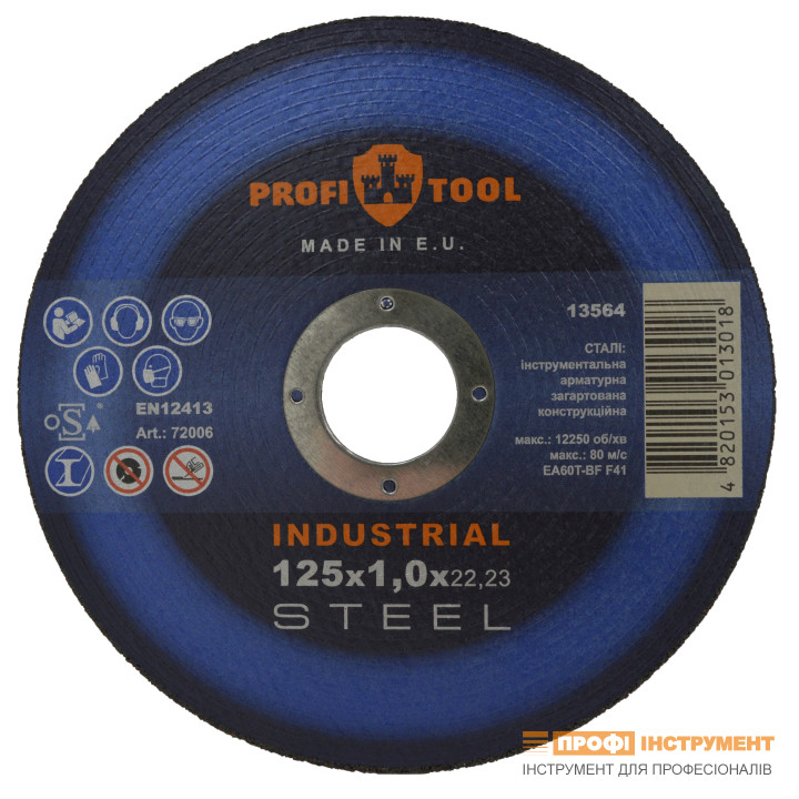 - Круг відрізний по металу PROFITOOL INDUSTRIAL 125х1,0х22,2 мм (72006)