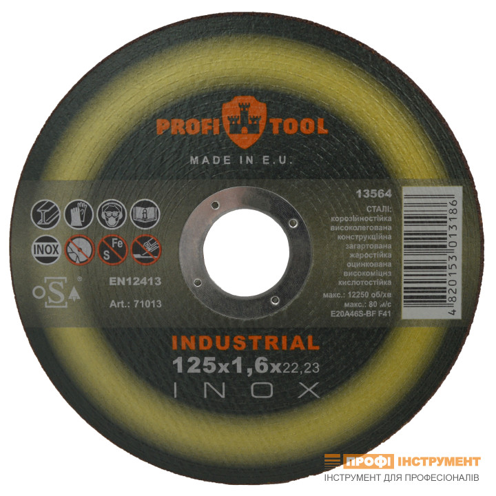 - Круг відрізний по металу PROFITOOL INOX INDUSTRIAL 125х1,6х22,2 мм (71013)