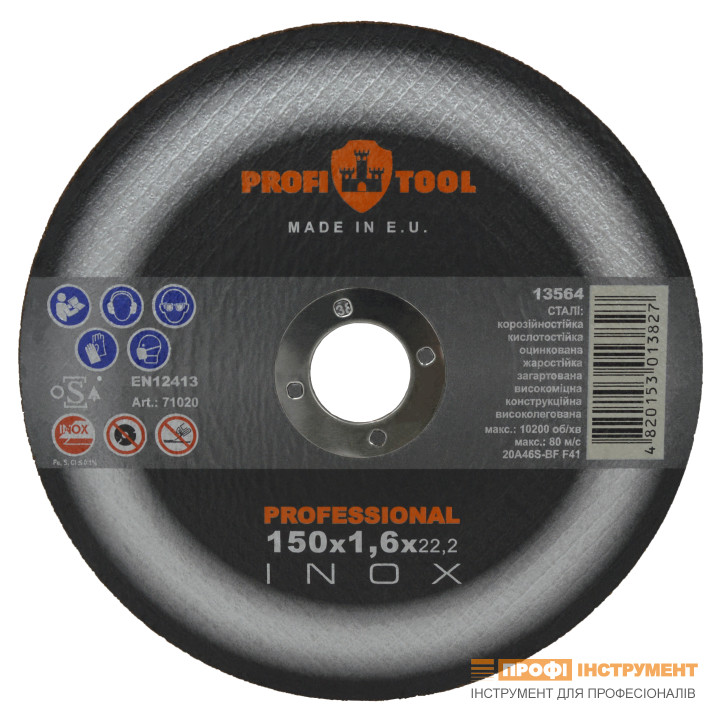 | 71020 | 150x1,6x22,2 | 13300 | INOX PROFESSIONAL | 20A46S-BF | F41 |