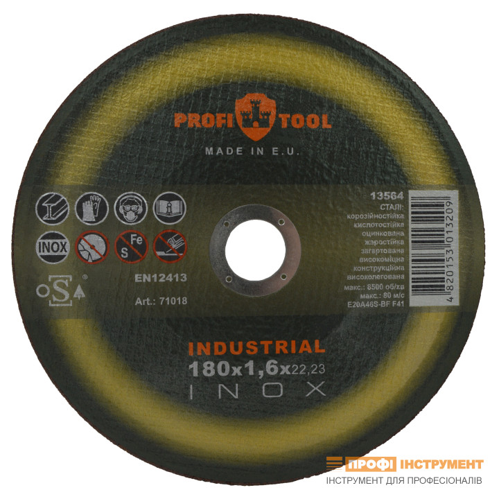 - Круг відрізний по металу PROFITOOL INOX INDUSTRIAL 180х1,6х22,2 мм (71018)