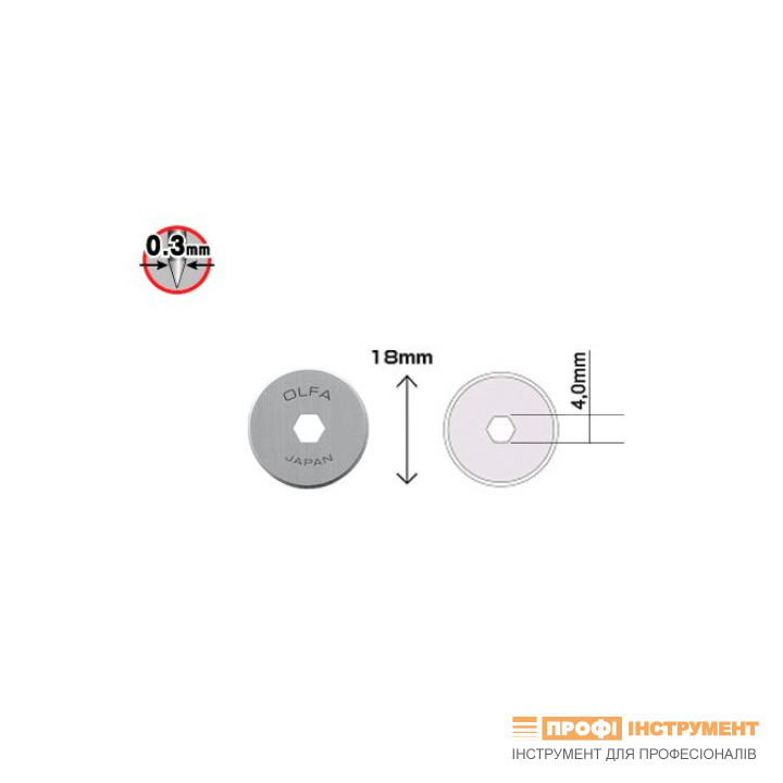 Лезо OLFA RB18-2 дискове 18мм 2шт; 0,3мм з подвійним кутом заточки RTY-4, PRC-2, CMP-3 (701510)