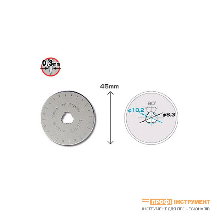 Лезо OLFA RB45-1 дискове 45х0,3 мм для RTY-2/G, RTY-2/DX, 45-C (731510)