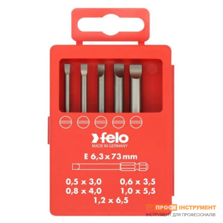 Набор бит FELO PROFI INDUSTRIAL шлиц 3,0x0,5/3,5х0,6/4,0х0,8/5,5х1,0/6,5х1,2х73 мм (03091716)