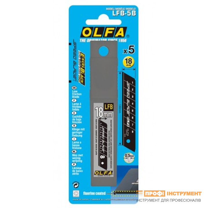 Лезвие OLFA LFB-5B; 18х100х0,5 мм; 8 сегментов; сверхострые черные лезвия покрытые фтором Excel Black Ultra Sharp Speed Blade для тяжелых условий эксплуатации; технология двойного хонингования для чрезвычайной остроты и на 25% острее, чем лезвия Heavy-Duty LB (323510)