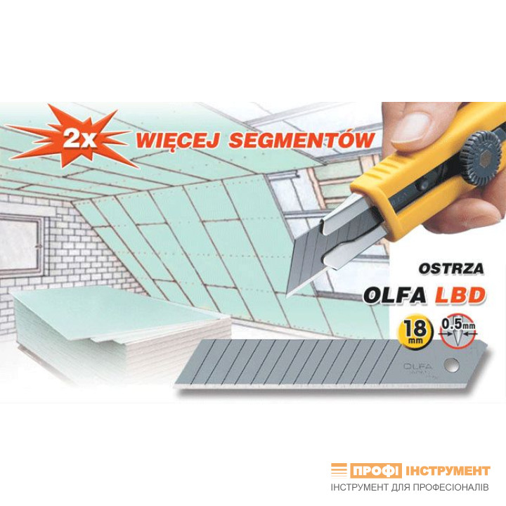 Лезвие Olfa LBD-50 (15 сегментов) 18мм 50шт, 0,5мм с двойным углом заточки, для ножей L-5, L5-AL, L-7, L7-AL, CMP-2, KL, PL-1 (338510)