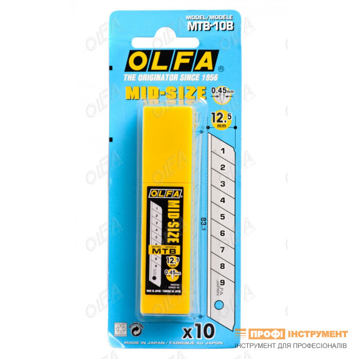 Лезвие Olfa MTB-10B 12.5x83.3x0.45 мм, 10 шт для ножей Mid Size (396510)