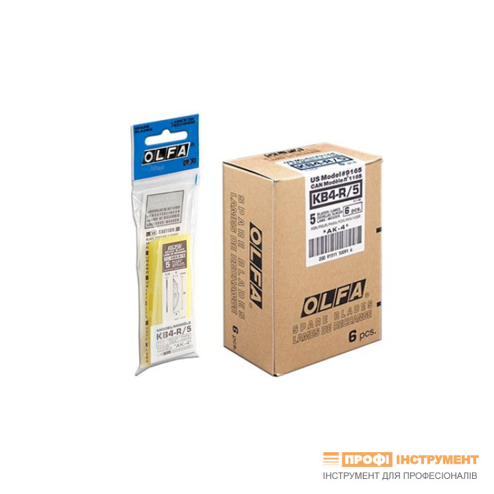 Упаковка с символом KB4-R/5 содержит 5 лезвий в пластиковой коробке и пакет из фольги.