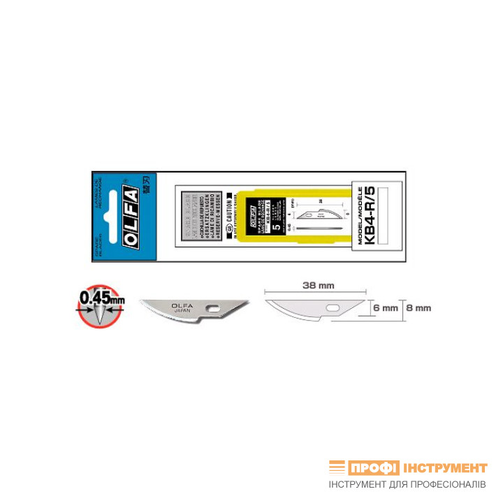 Лезвие OLFA KB4-R/5 перьевое 5шт 38x8x0,45мм из углеродистой стали с двойным углом заточки AK-4, HS-1 (551550)