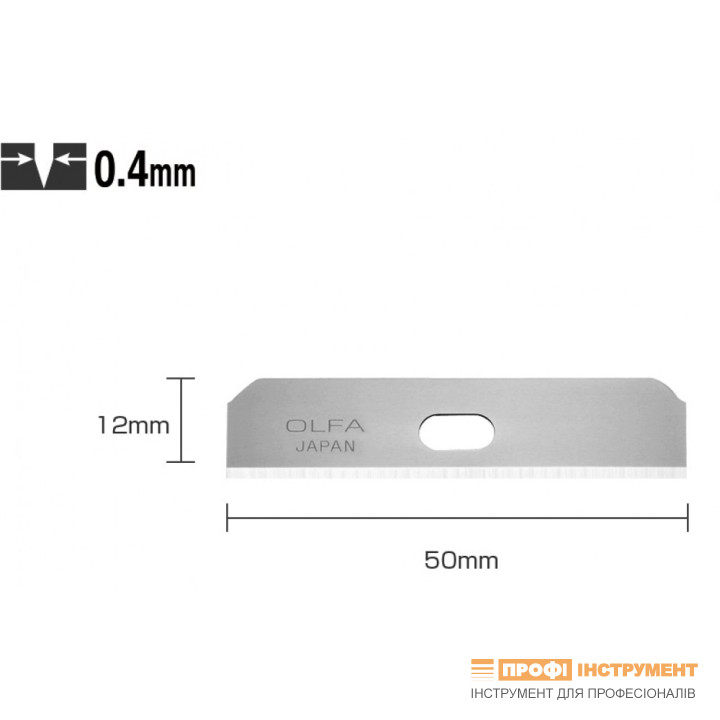 - Длина лезвия 50 мм, ширина 12 мм, толщина 0.4 мм;
