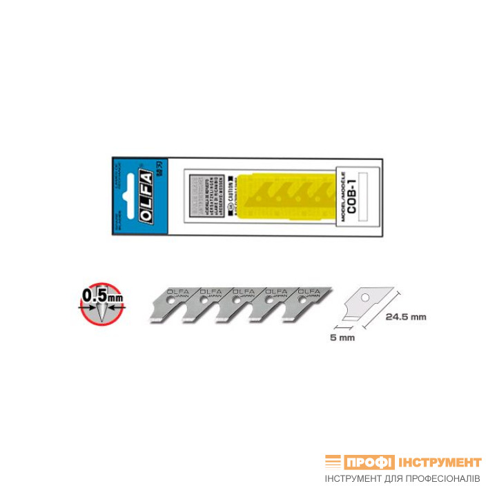 Лезвие Olfa COB-1 5-сегментов 15шт; с двойным углом заточки, для ножей CMP-1, CMP-1/DX (651512)