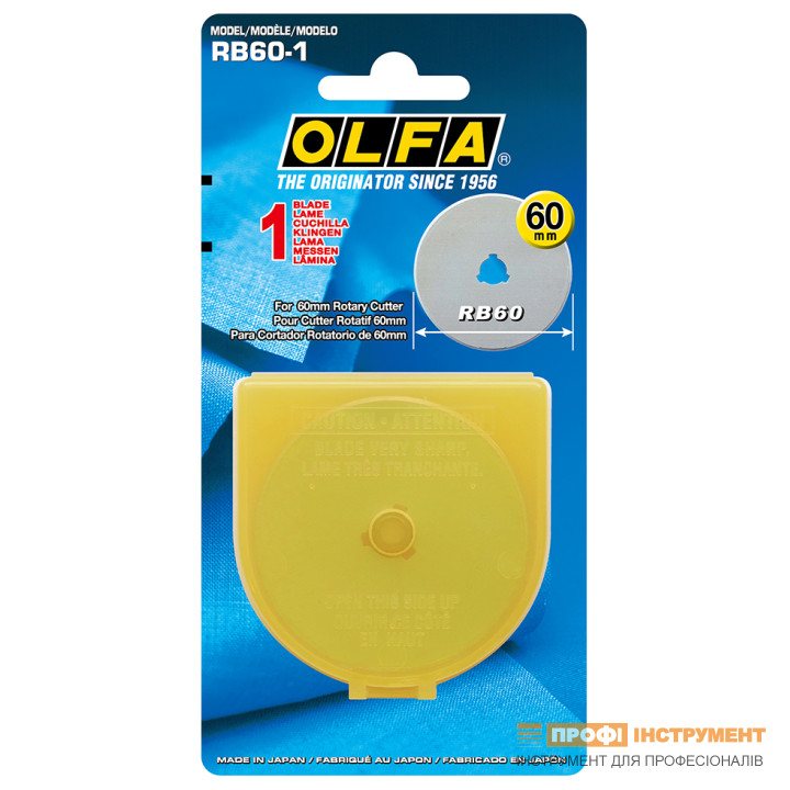 - 1 поворотное лезвие в пластиковом футляре. 60 мм. Упаковано в блистер;
