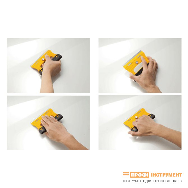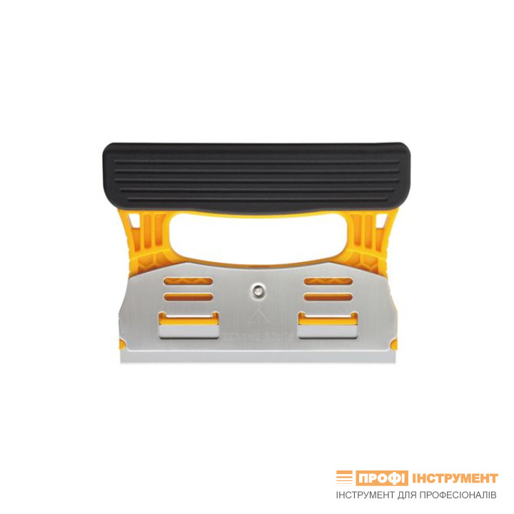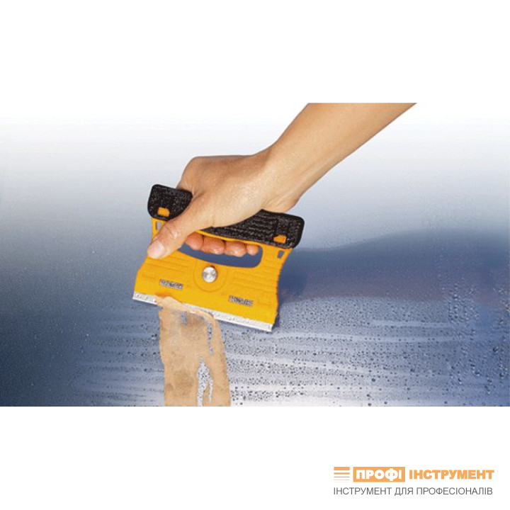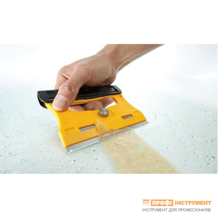 Рукоятка и крышка лезвия из нержавеющей стали шириной 120 мм из полипропиленовой смолы, армированной стекловолокном, обеспечивают повышенную прочность и стойкость к ацетону. Вместе с пластиной из нержавеющей стали, которая фиксирует лезвие, они образуют рукоятку толщиной 7 мм/с крепежным винтом – 14 мм/. Канавки на желтой поверхности ручки и черный кожух лезвия помогают найти безопасный и удобный способ держать инструмент. Скребок очень лёгкий, весом всего 115 грамм.