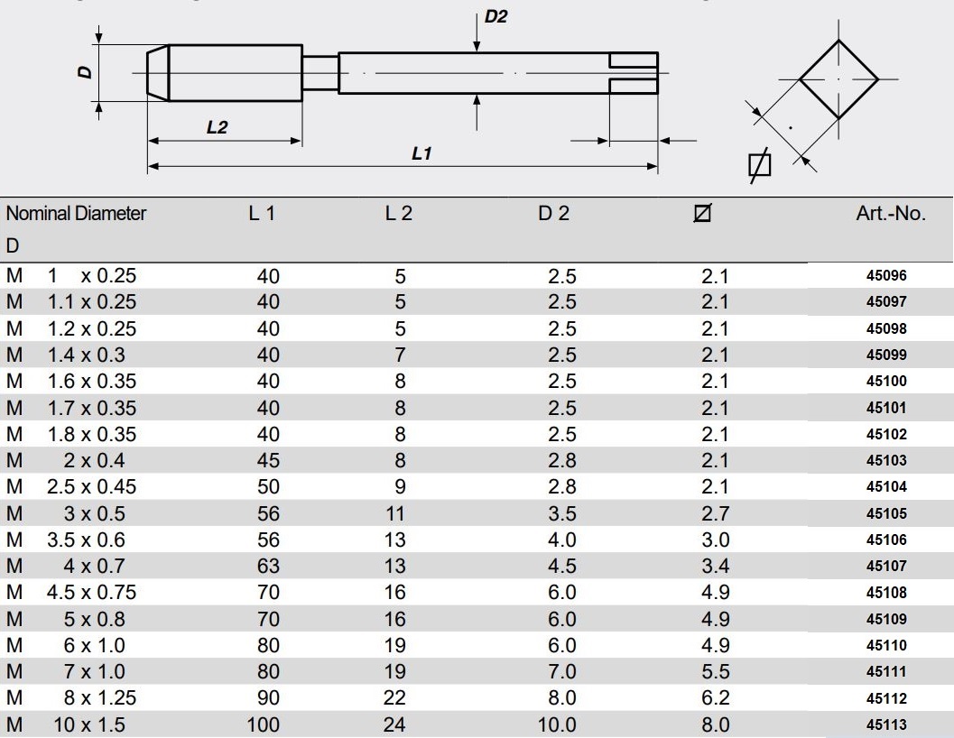 Метчик PROFITOOL машинный М3х0,5; M35 HSS-E; DIN 371; форма C/35°RSP; 11х56 мм; резьба DIN 13; ISO2/6H (45105)для нелегированных и низколегированных сталей с пределом прочности до 1000 Н/кв.мм;универсальный;для сквозных отверстий;Размер: 11х56 мм;Стандарт: DIN 371;Форма: С/35°RSP;Марка стали (материал): М35 HSS-E;Допуск: ISO2/6H;Резьба: DIN 13...