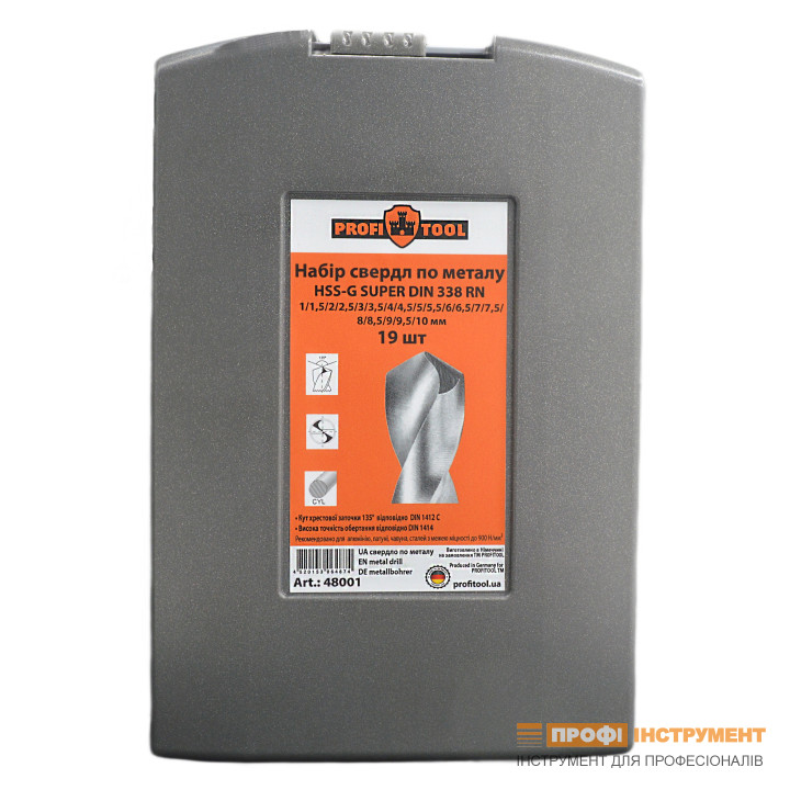 Набор сверл по металлу HSS-G SUPER DIN 338 RN PROFITOOL 1-10 мм; 19 шт.