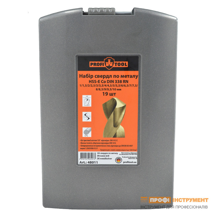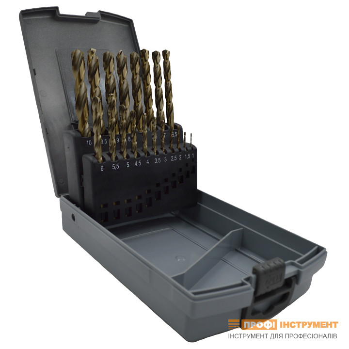 Набор сверл по металлу 1-10 мм HSSE-Co DIN 338 RN PROFITOOL 19 шт. (48011)
