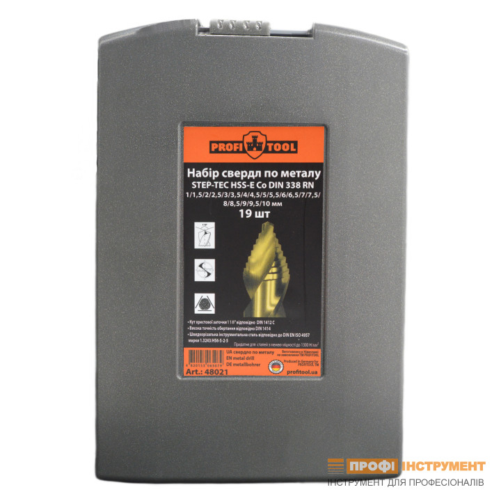 Набор сверл по металлу HSSE-Co STEP-TEC DIN 338 RN PROFITOOL 1-10 мм; 19 шт. (48021)