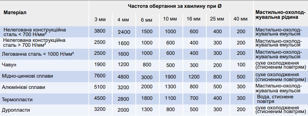 - алюминия, латуни, бронзы, чугуна, легированных и нелегированных сталей с пределом прочности до 1100 Н/мм² (пригодно до 1300 Н/мм²).