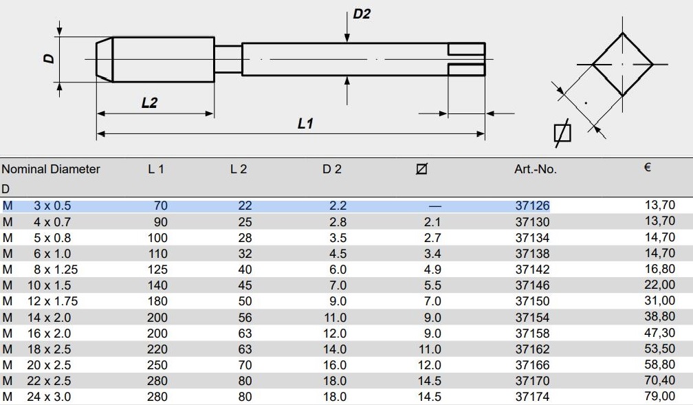Метчик VOLKEL машинный гаечный М3х0,5 (37126)
