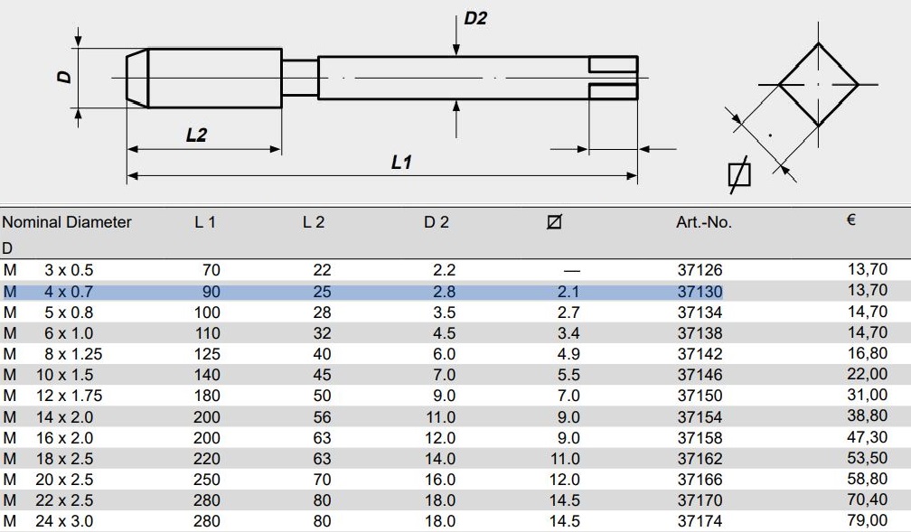 Метчик VOLKEL машинный гаечный М4х0,7 (37130)