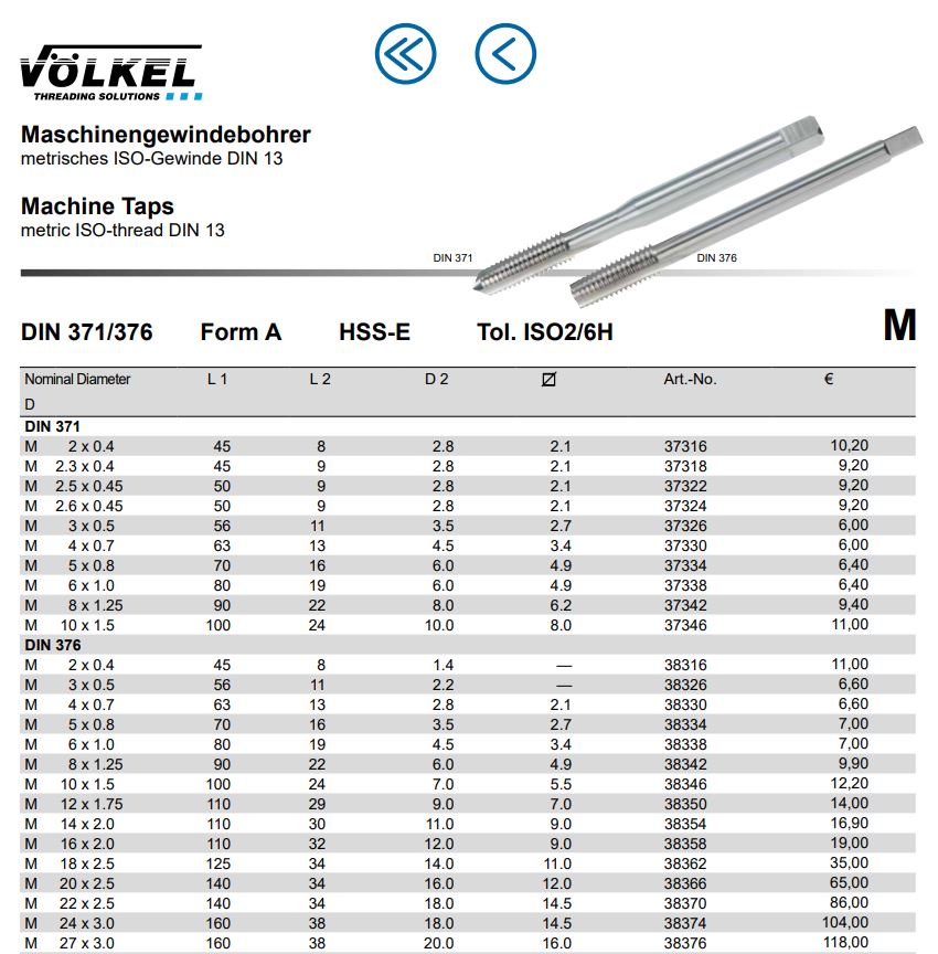 Метчик машинный VOLKEL М8х1,25 (38342)