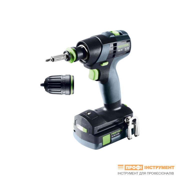 Акумуляторний дриль-шурупокрут TXS 18 C 3,0-Plus; безщітковий двигун EC-TEC; 18 В; 2х3,0 Аг; 0-470/0-1600 об/хв; 22/40 Нм; швидкоз'ємний патрон 10 мм FastFix; вбудований магнітний відсік для біт; керована підсвітка робочої зони; 13-ступінчате регулювання моменту; кліпса на ремінь; діаметри свердління 35/10 мм; T-подібна рукоятка; 0,7кг; SYS3 M 187