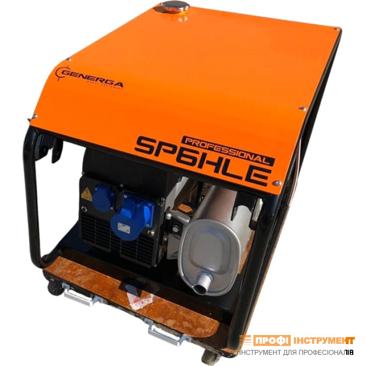 Генератор SP6HLE; номінальна потужність 6кВА/6 кВт; HONDA GX390; 13 к.с.; альтернатор NSM (Італія) безщітковий; точність напруги +5%, - 10%; коеф. потужності 1; бак 32 л.; IP23; клас ізоляції H; тепловий захист; захист від відсутності рівня мастила; ел. п