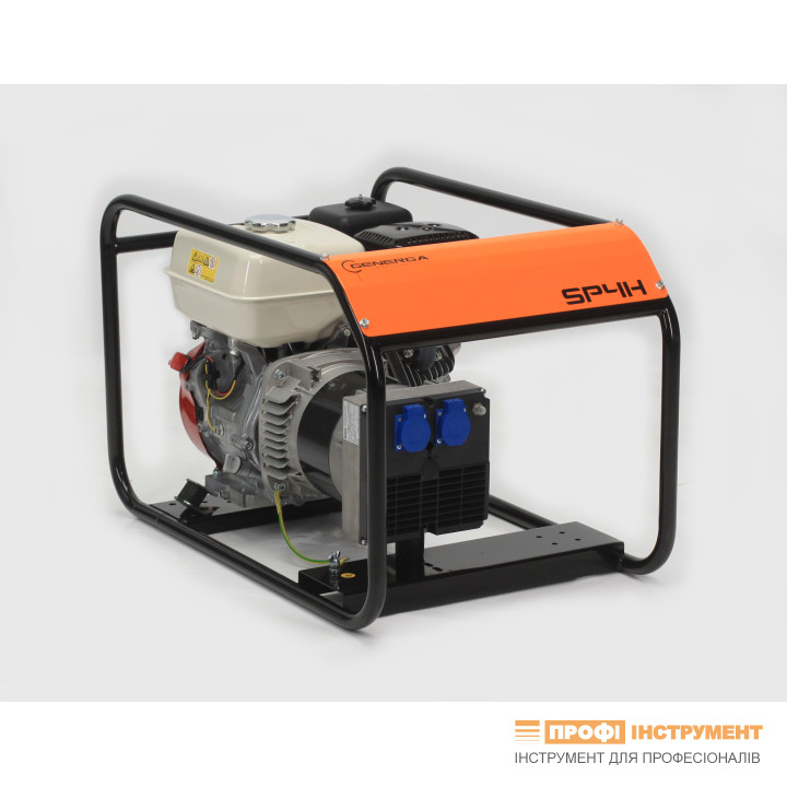 Генератор SP4H AVR; 4,2 кВА/кВт; двигатель HONDA GX270; 8 л.с.; 3000 об/мин; альтернатор NSM (Италия) бесщеточный; автоматический регулятор напряжения AVR в пределах +1,5%, –1,5%; коэф. мощности 1; бак 5,3 л.; IP23; класс изоляции H; тепловая защита;