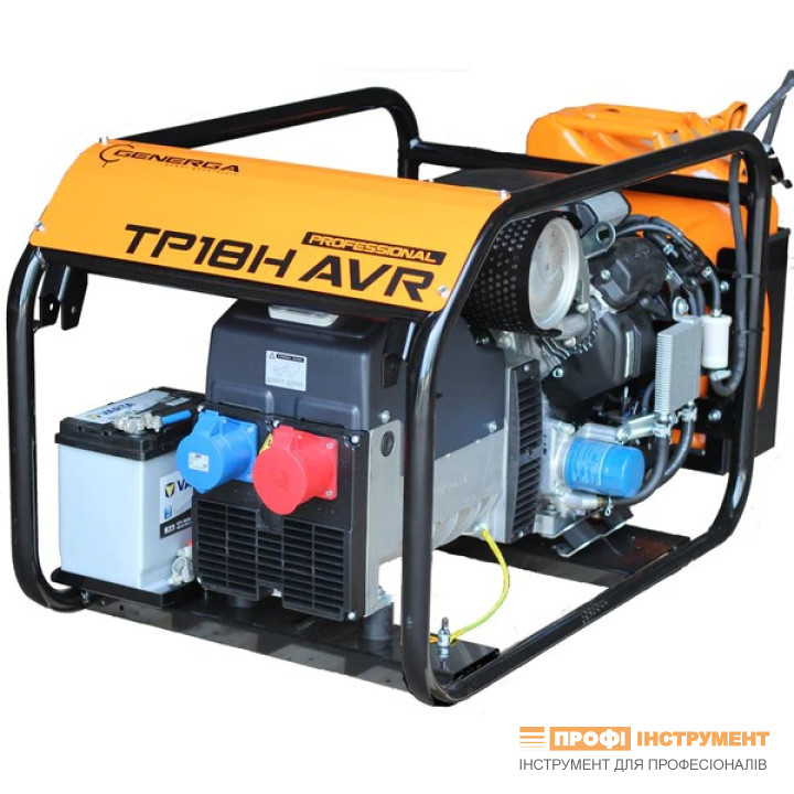 Генератор TP18H AVR; 400В: 18кВА/16,5 кВт, 230В: 9 кВА/9 кВт; HONDA iGX 800; 25 к.с.; альтернатор NSM (Італія) щітковий; електростартер; автоматичний регулятор напруги AVR в межах +1,5%, -1,5%; коеф. потужності 0,8; бак-каністра 20 л.; IP23; клас ізоляціїах.