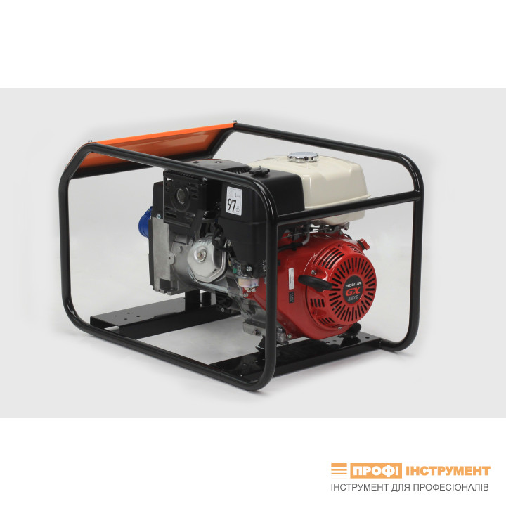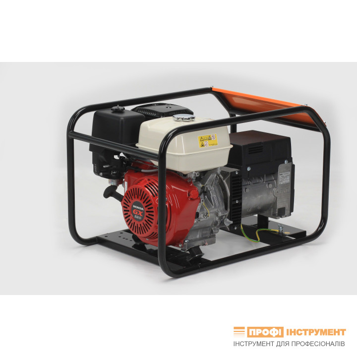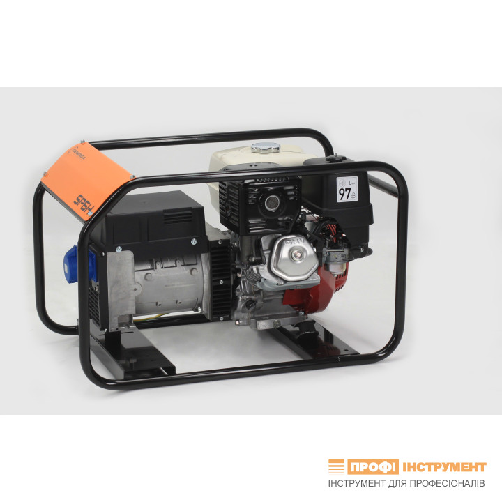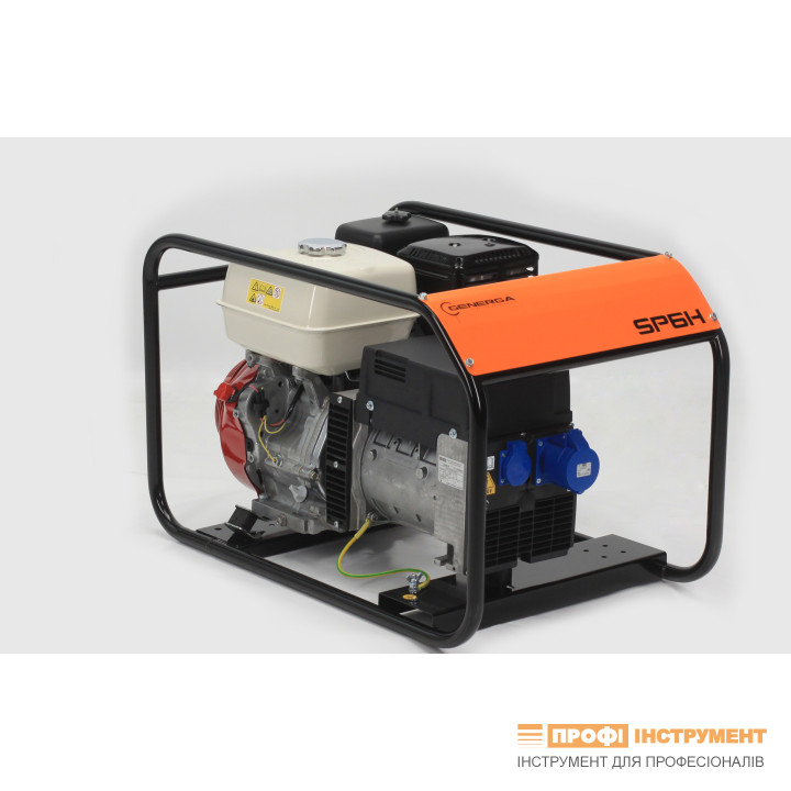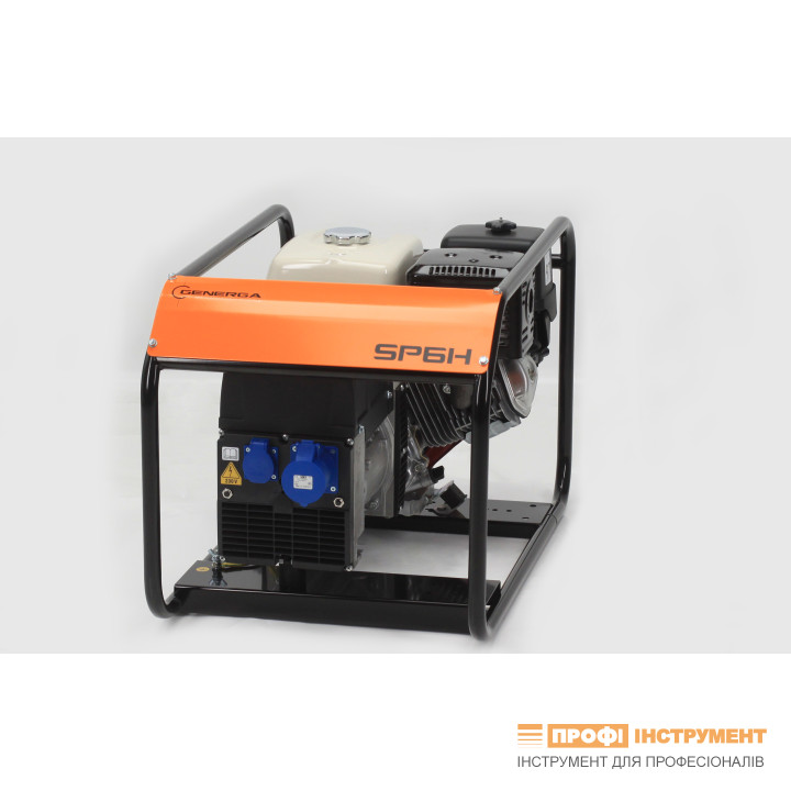 Генератор SP6HE; 6кВА/6 кВт; HONDA GX390; 13 л.с.; альтернатор NSM (Италия) бесщеточный; точность напряжения +5%, – 10%; коэф. мощности 1; бак 6,1 л.; IP23; класс изоляции H; тепловая защита; защиту от отсутствия уровня смазки; эл. мощите согласно ISO 85