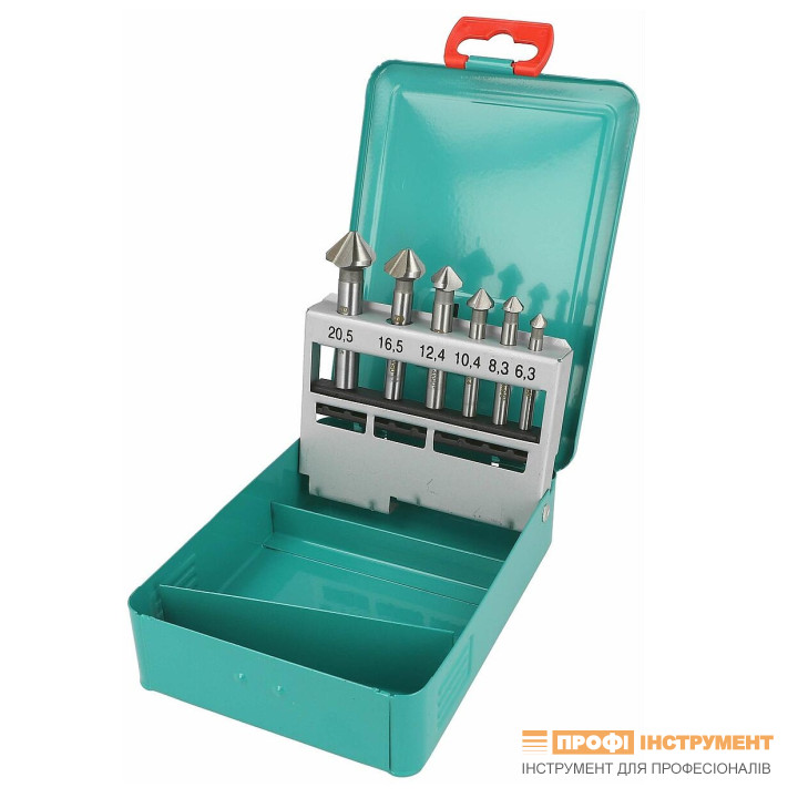 Набір конічних зенкерів 6.3/8.3/10.4/12.4/16.5/20.5 мм 6 шт. Матеріал: HSS.