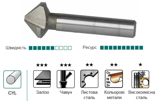 - Зенкує і видаляє заусенці одночасно.