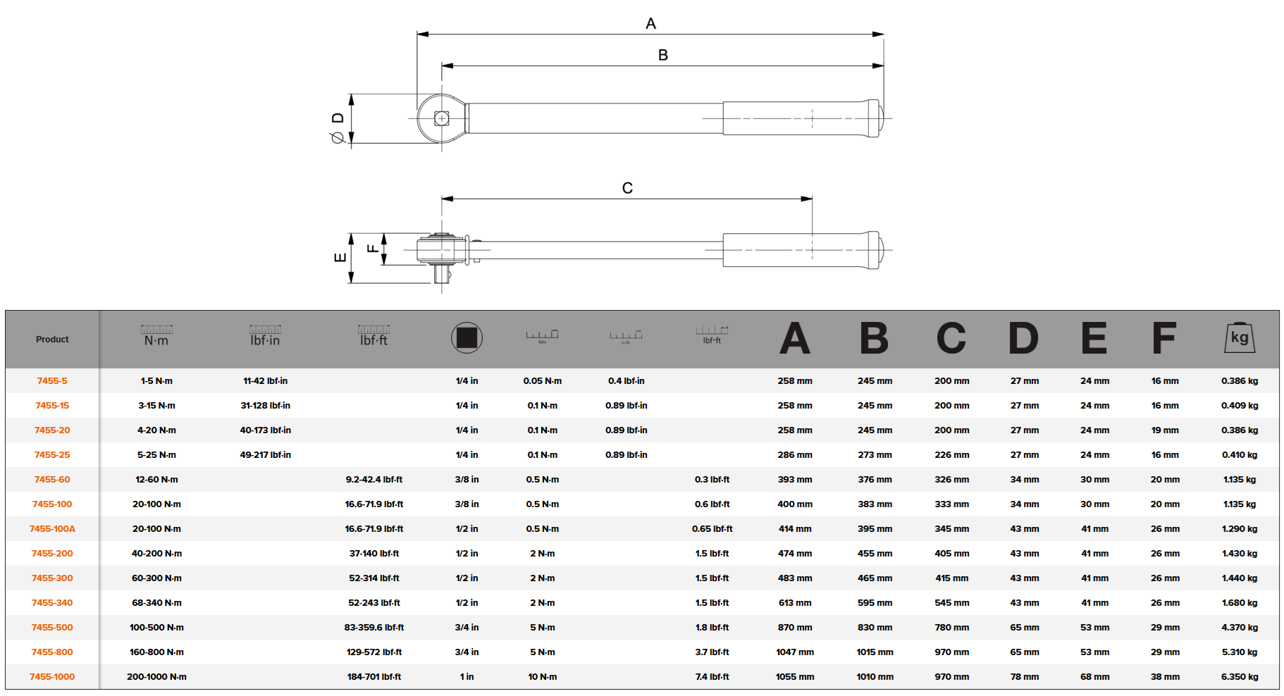 - Двойная шкала в Нм/фут.фунт и Нм/дюйм.фунт (размеры 5-25 Нм);
