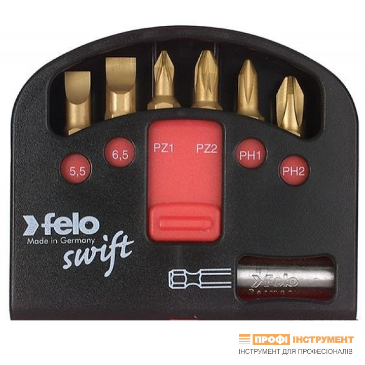 Набор бит Swift TiN 25 мм 5.5х1 / 6.5х1.2 / PZ1 / PZ2 / PH1 / PH2 + магнитный держатель; 7шт.