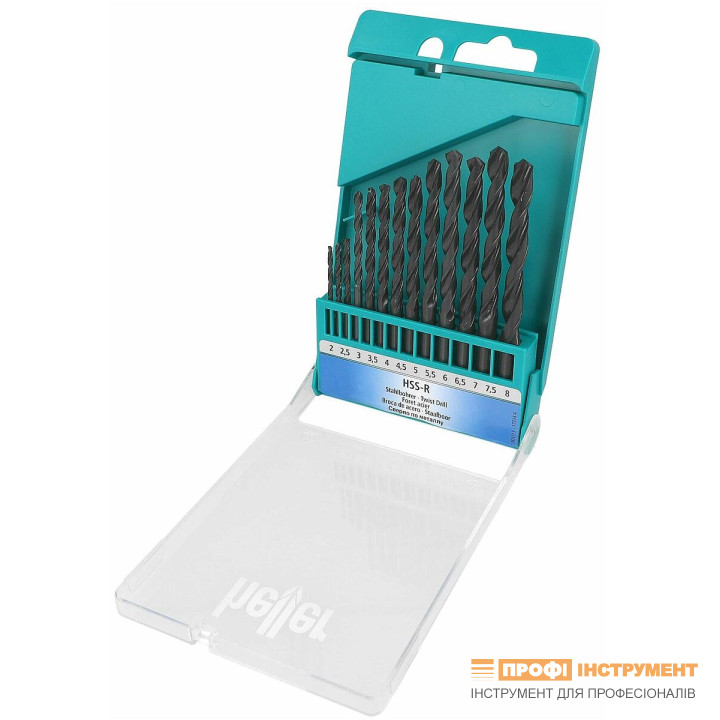 Набір свердл по металу HSS-R 2/2.5/3/3.5/4/4.5/5/5.5/6/6.5/7/7.5/8 мм. 13шт. Матеріал: HSS-R. Марка сталі: W4Mo3Cr4VSi (W4). Твердість: 55-67 HRC
