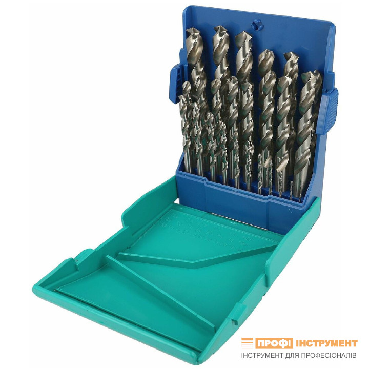 Набір свердл по металу HSS-G Super 1-13 мм. крок 0.5 мм. 25шт. Матеріал: HSS-G Super. Марка сталі: W9Mo3Cr4V (W9). Твердість: 60-67 HRC