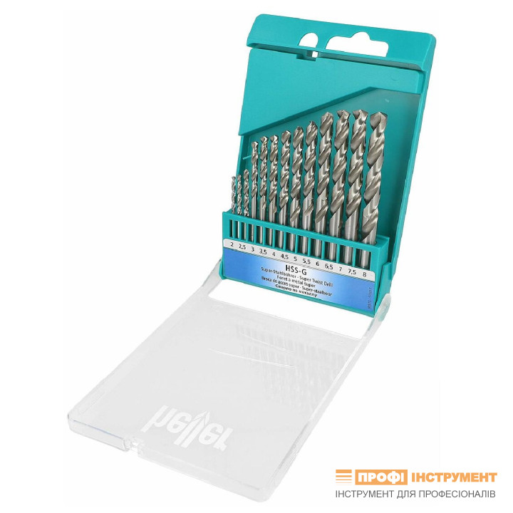 Набір свердл по металу HSS-G Super 2/2.5/3/3.5/4/4.5/5/5.5/6/6.5/7/7.5/8 мм. 13шт. Матеріал: HSS-G Super. Марка сталі: W9Mo3Cr4V (W9). Твердість: 60-67 HRC