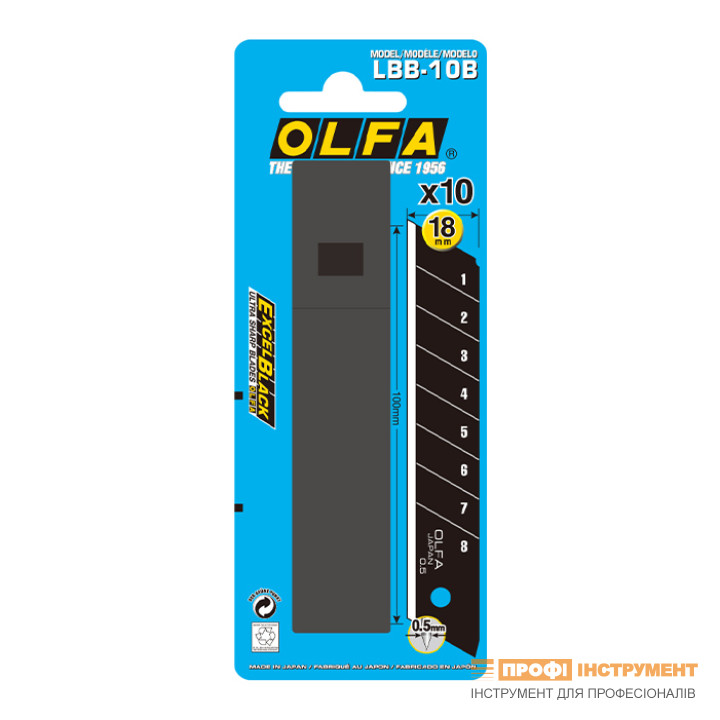 Лезвие Olfa LBB-10B сверхострые черные лезвия ExcelBlack, блистер 10 шт (301551)
