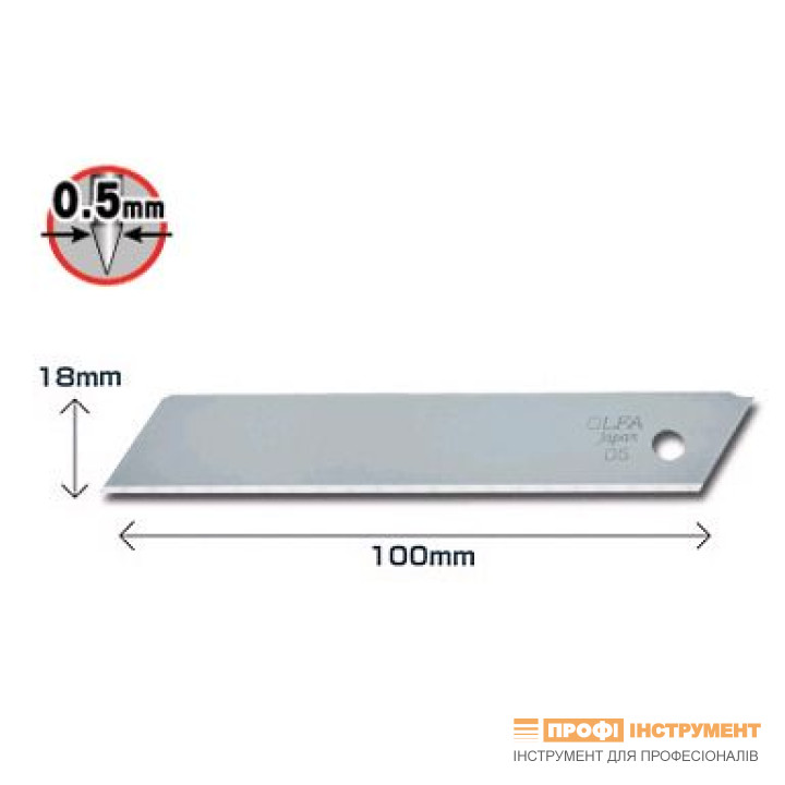 Лезвие шириной 18 мм с размерами и формой несегментированное лезвия из группы LB, но без насечек для облегчения отламывания использованного сегмента. Полезно для задач, требующих резки по всей длине – условия, когда лезвия со щелями легко ломаются. Используется для резки толстых нетканых материалов, войлока, изоляционных и покровных матов, полистирола, микрокаучука, пенопласта. Благодаря использованию инструментальной стали с соответственно подобранными параметрами и точной заточке лезвие чрезвычайно прочно, режет легко и точно. Толщина лезвия 0,5мм, длина режущей кромки 100мм.