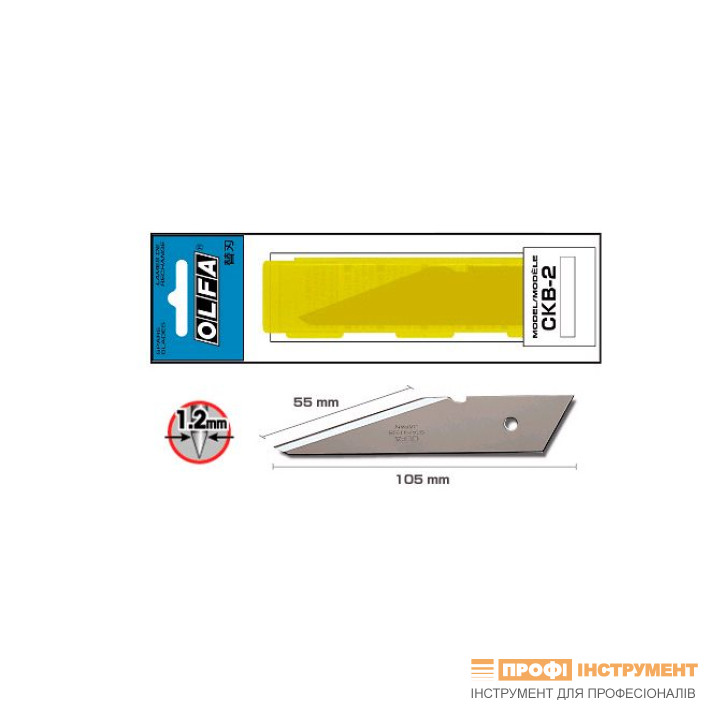 Лезо Olfa CKB-2 из нержавеющей стали 105х55х20х1,2 мм, блистер 2 шт, для ножа СК-2 (604510)