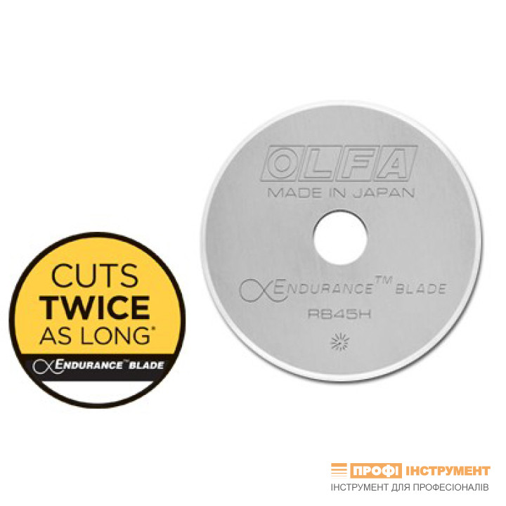 Это вращающееся лезвие OLFA® Endurance диаметром 45 мм сохраняет необходимую остроту реза вдвое дольше стандартного лезвия RB45. Такой эффект достигнут благодаря профессиональному шлифованию лезвия из вольфрамовой инструментальной стали с фирменным химическим составом. Экономьте время и деньги, увеличивая время между изменениями лезвия!