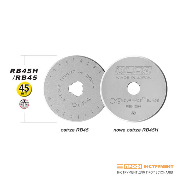 Лезвие OLFA RB45H-1 Endurance; вольфрамовая инструментальная сталь с запатентованной химией металла предназначена для резки вдвое длиннее; блистер 1шт; для ножей RTY-2/G, RTY-2/DX, RTY-2/NS, RTY-2/C, RTY-2C/YEL, RTY-2C/PIK, 45C