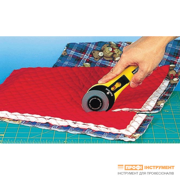 Циркулярный нож представляет собой проверенный инструмент для разрезания тканей, трикотажа, кожи, фольги и бумаги. Очень ценится среди любителей шитья пэчворк благодаря тому, что резка циркулярным ножом гораздо быстрее и точнее, чем ножницами, им можно разрезать несколько слоев ткани одновременно. Раскраиваемый материал все время лежит ровно на коврике, поэтому на него можно положить выкройку, шаблон или линейку и разрезать по ним.